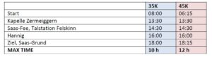 Postauto inklusive für Rückfahrt nach Saas-Grund unter Vorweisung der Startnummer.